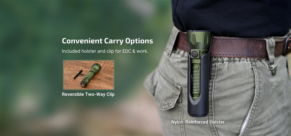 With an IPX8 waterproof rating of up to 2 meters and drop resistance of up to 1.5 meters, this compact yet high-performance flashlight can withstand various environmental conditions. Measuring under six inches in length and weighing just under 7 ounces (including the battery), the Javelot can be carried via its holster or two-way clip for versatile options. Perfect for everyday carry, outdoor adventures, emergencies, or use as a mounted light, the Olight Javelot is a reliable companion.