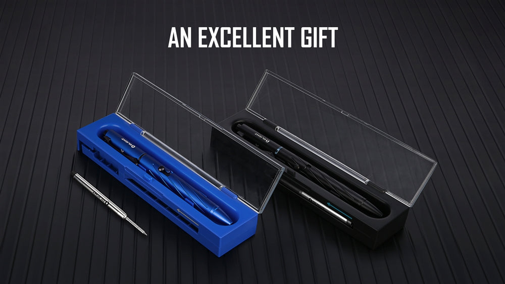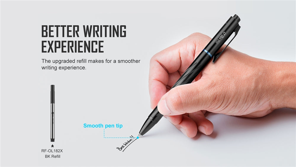 Olight OPen Pro is an elegant EDC pen that also comes with a bright flashlight and green laser pointer. Made of aluminum alloy, this pen is sturdy and rests firmly in your hand. Its stainless steel pen tip ensures smooth, effortless writing.