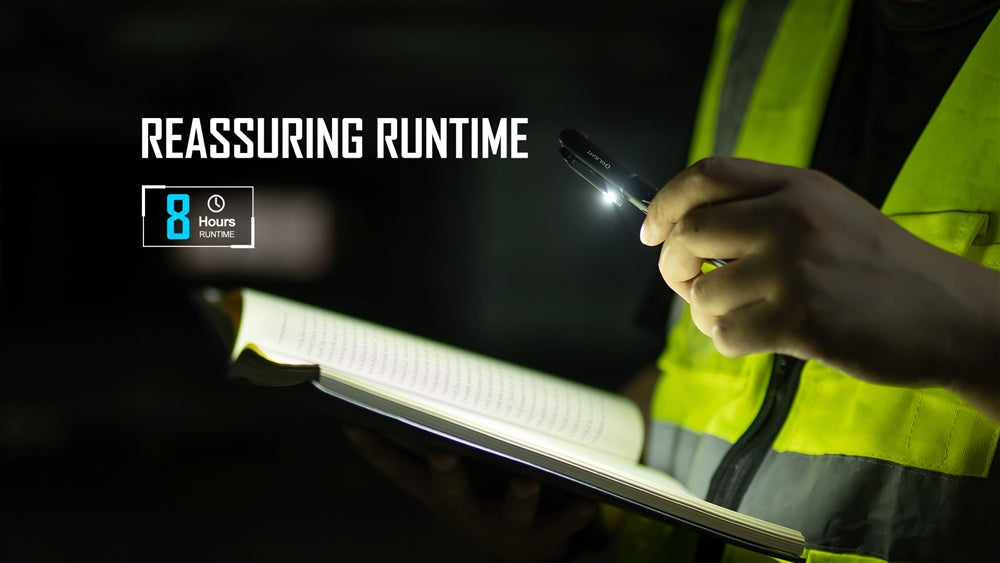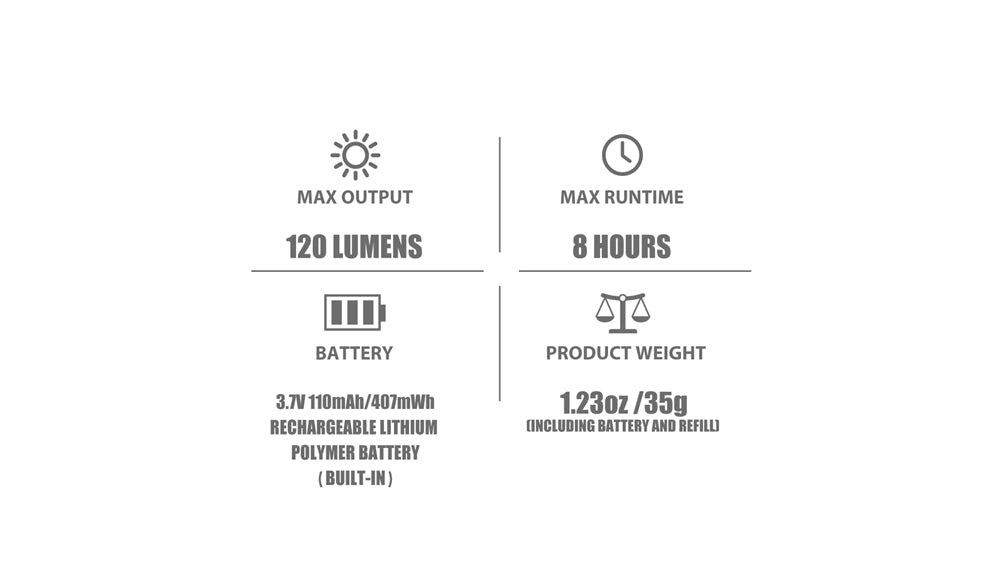 The upper part of the OPen Pro is a 120 lumen USB-C rechargeable flashlight. Its L-type bolt action switch can pop out and retract the pen tip, turn the flashlight on and off, or activate the green laser pointer for pointing or marking. OPen Pro is well suited for everyday carry during presentations, patrols, on job sites, or anywhere else.