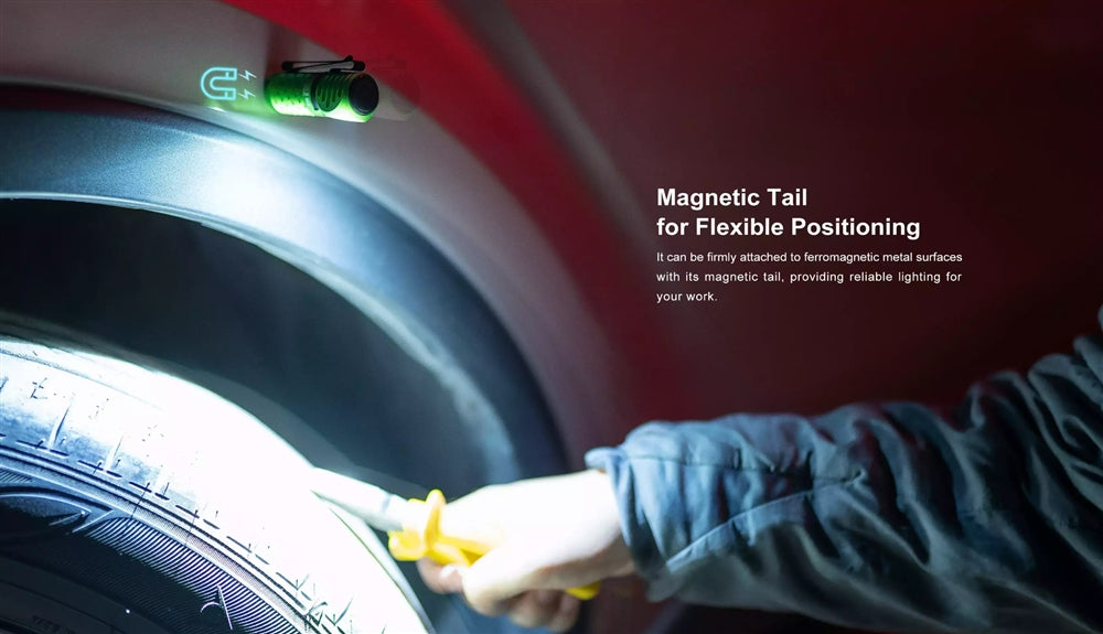 Good things come in small packages! The Olight Perun 2 Mini runs on an included rechargeable battery and can last for up to 10 days on the lowest mode. When it is time to charge, use the included magnetic USB charging cable that snaps to the base of the flashlight.