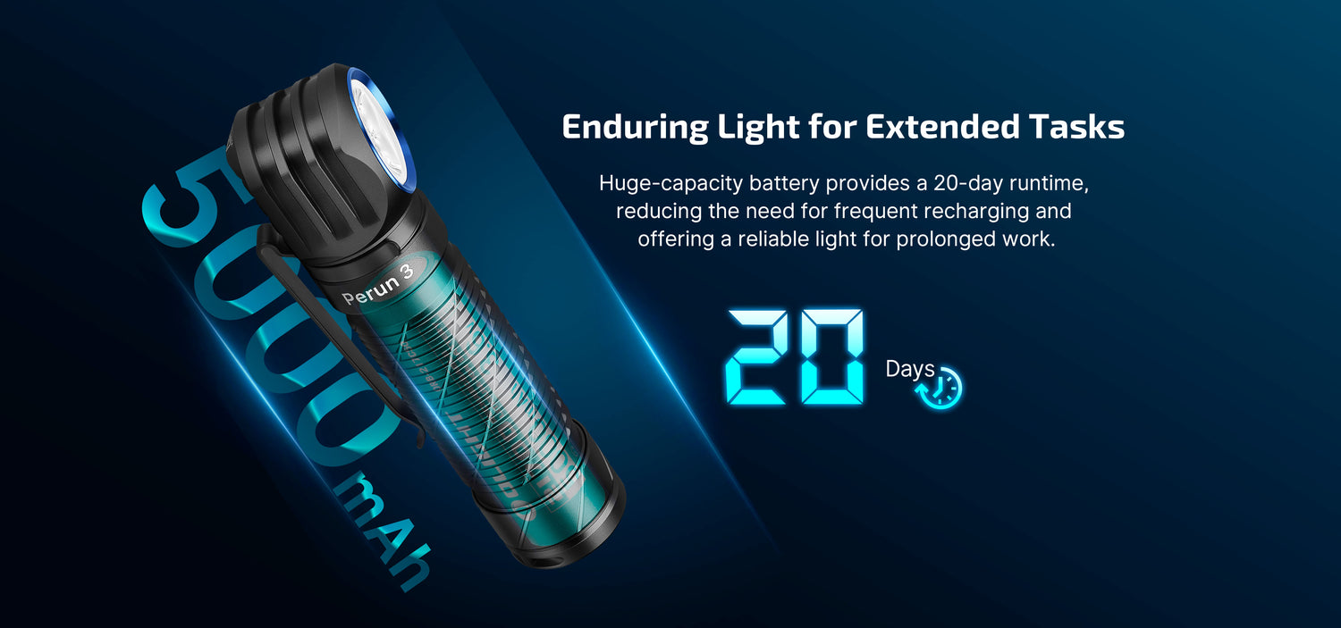The Olight Perun 3 is a versatile headlamp that doubles as a right-angle flashlight, offering both white and red light outputs. Compared to its predecessor, the Perun 3 is brighter, lasts longer, lighter, and now includes a red light output. It delivers an impressive 3,000 lumens and can illuminate distances of up to 174 yards.