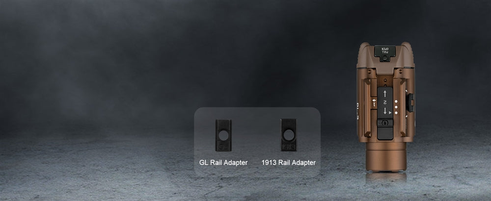 • Has a sliding key block and includes 1913 and GL rail adapter