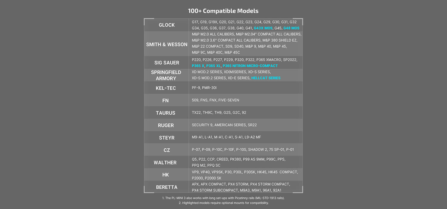 The Olight PL-MINI 3 is a compact rail-mounted flashlight that fits most setups, delivering a maximum output of 600 lumens and a throw of 109 yards. Compared to its predecessor, the PL-MINI 3 is lighter, features a longer runtime, and has a programmable strobe mode. Installing the PL-MINI 3 is effortless; simply align the rail stopper with the recoil groove of the rail and slide the PL-MINI 3 forward or backward to your desired position. Three different rail adapters and one Picatinny rail mount are included for added versatility. The PL-MINI 3 also features an ambidextrous switch design catering to left and right-handed users, allowing for flexible operation.