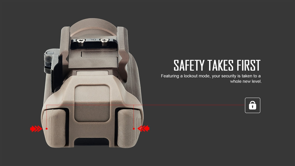 You can easily attach and detach the Olight PL PRO with the quick-release lever. Snuggly fitting, the light controls are always right at your fingertips. Left-handed? The new silent ambidextrous switch allows access to functions from either hand.
